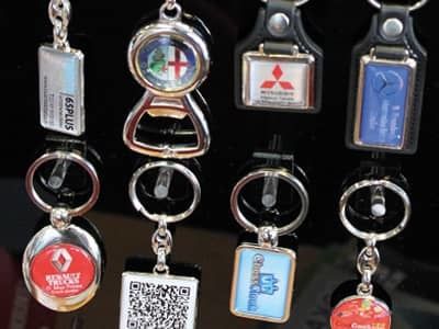 Repko ontwerpt, bewerkt, fabriceert en levert diverse uitvoeringen sleutelhangers van metalen sleutelhangers met gravure of doming tot flexibele gedoomde sleutelhangers.