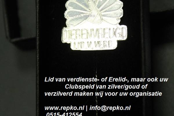 Wilt u dit niet ongemerkt laten dan bent u bij Repko aan het goede adres. Wij ontwerpen, vervaardigen en leveren insignes, spelden voor erelid of lid van verdienste vanaf 1 stuks. Samen met ons bedenkt/ontwerpt en bespreekt u de (on)mogelijkheden voor een uitvoering in zilver/goud/verzilverd / verchroomd met met bijvoorbeeld epoxy.